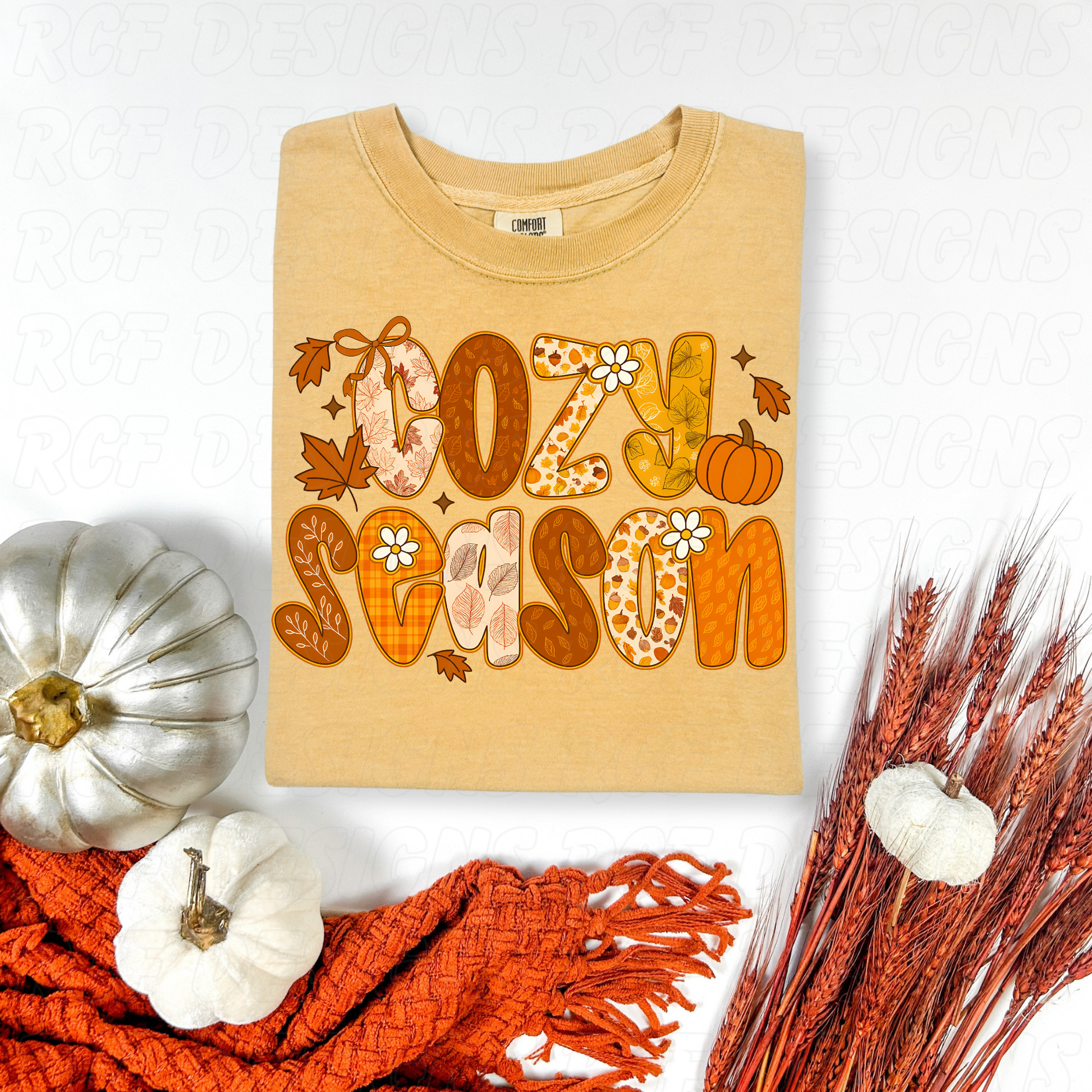 - Design shown on Comfort Colors Mustard color